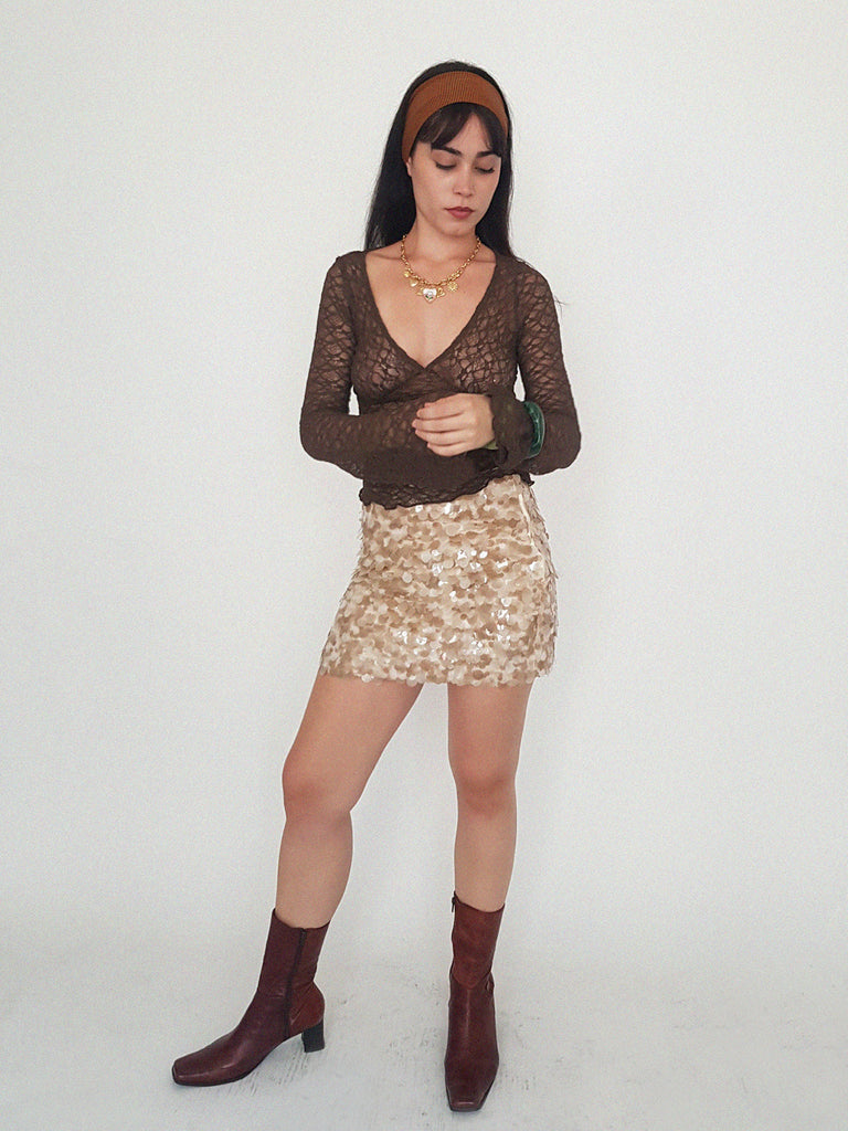 SEQUIN SKIRT // camel