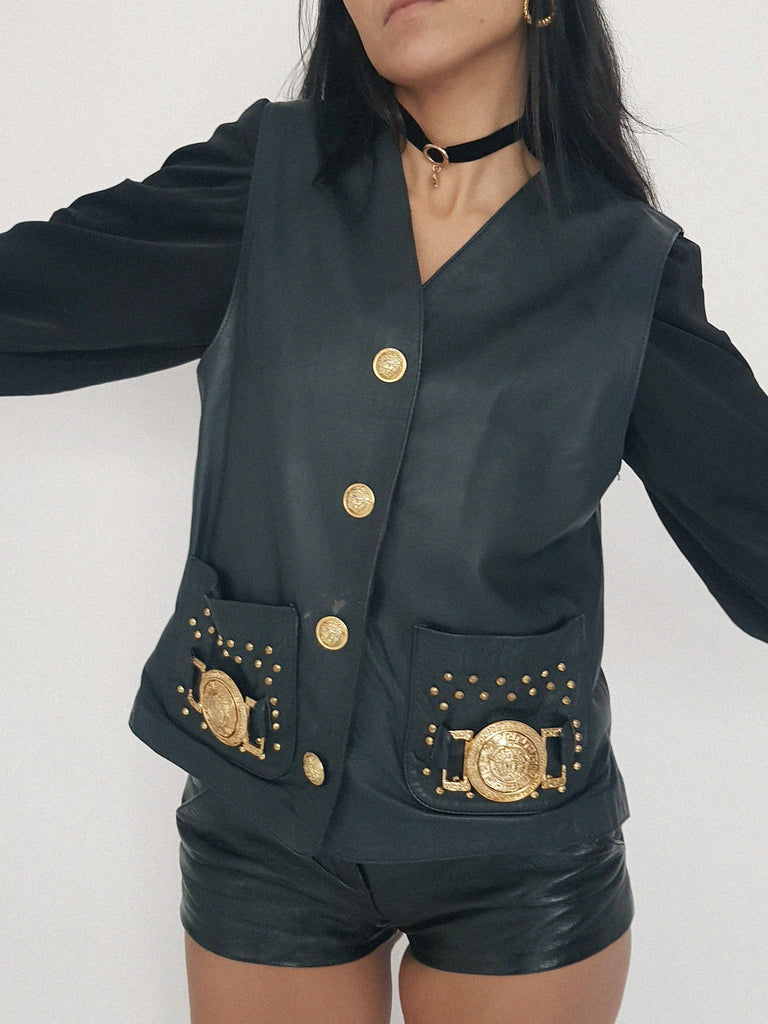 leather gold vest